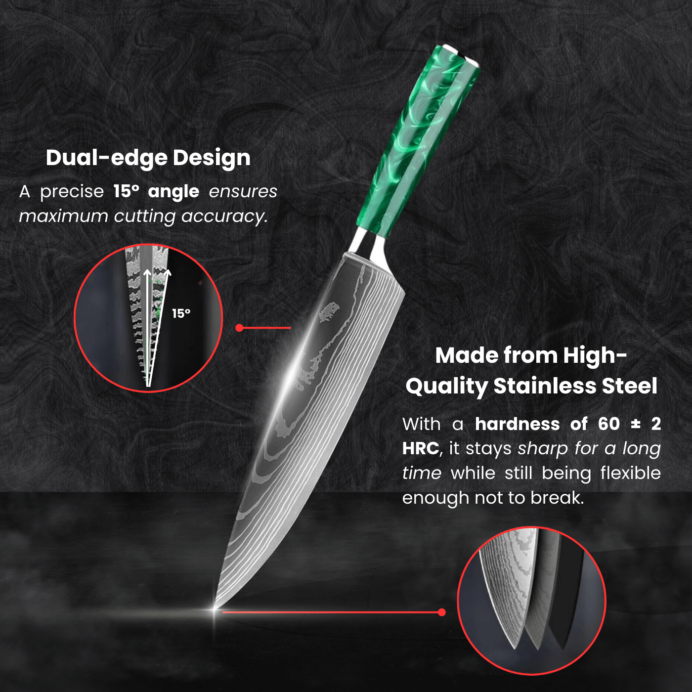 • Edge: Ultra-precise 15° angle per side (Dual-edge) for maximum cutting accuracy.