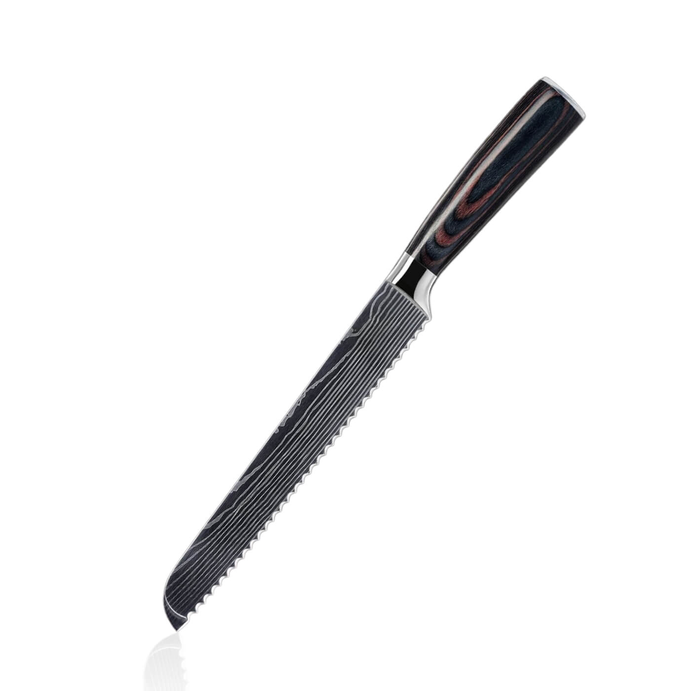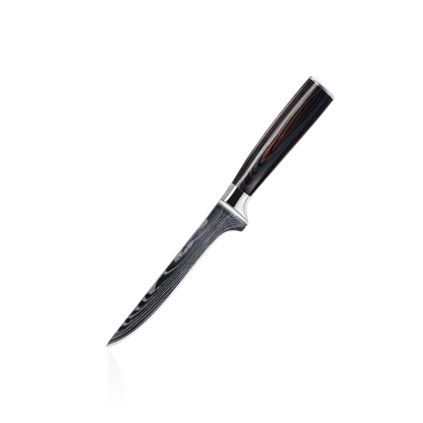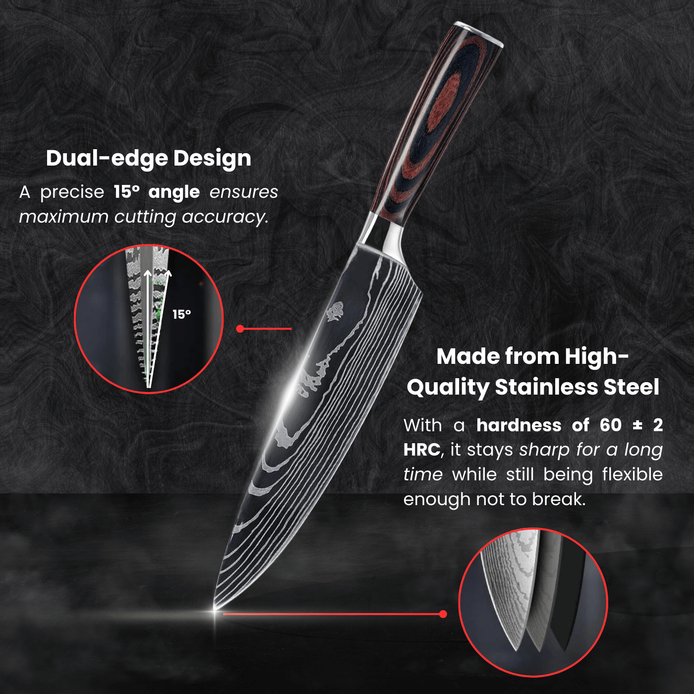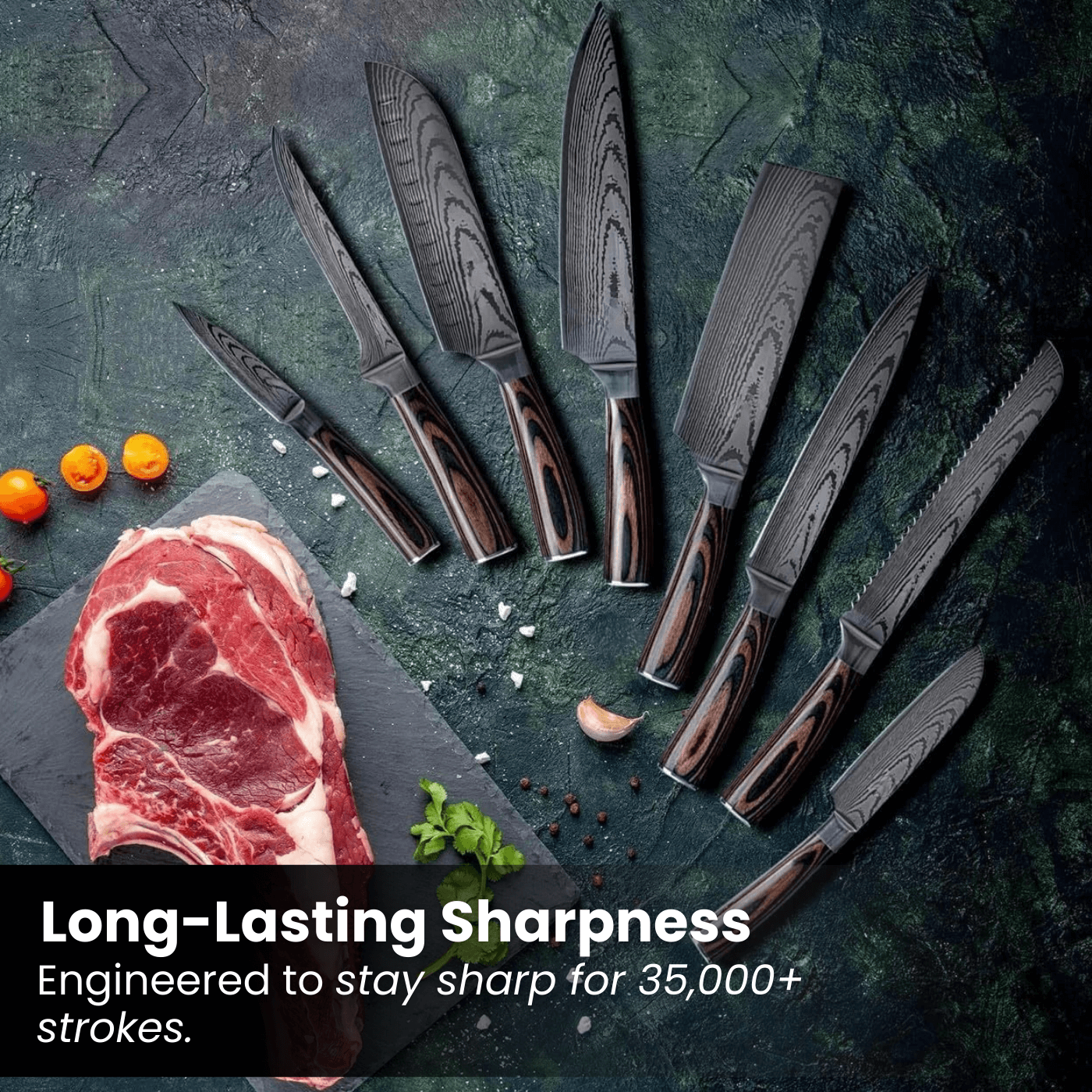 • Set Contents: 8 professional knives, including Chef's (8"), Cooking (7.5"), Bread (8"), Japanese Utility (7"), Small Kitchen, Boning, Utility, and Paring (3.5").